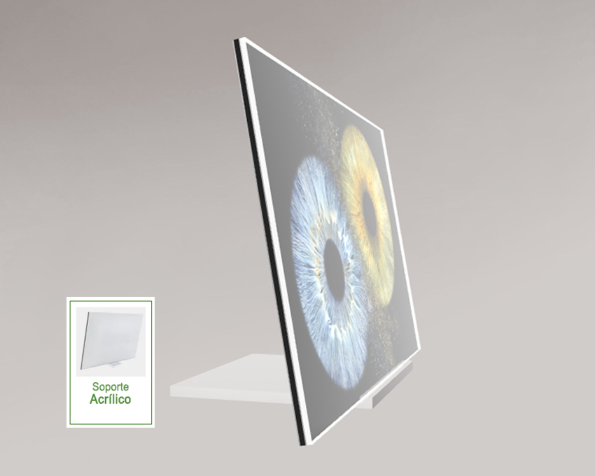 Impresión de tu obra de arte en PORTAFOTOS METACRILATO 4mm, un pequeño formato, una gran historia, un detalle íntimo lleno de significado y perfección.