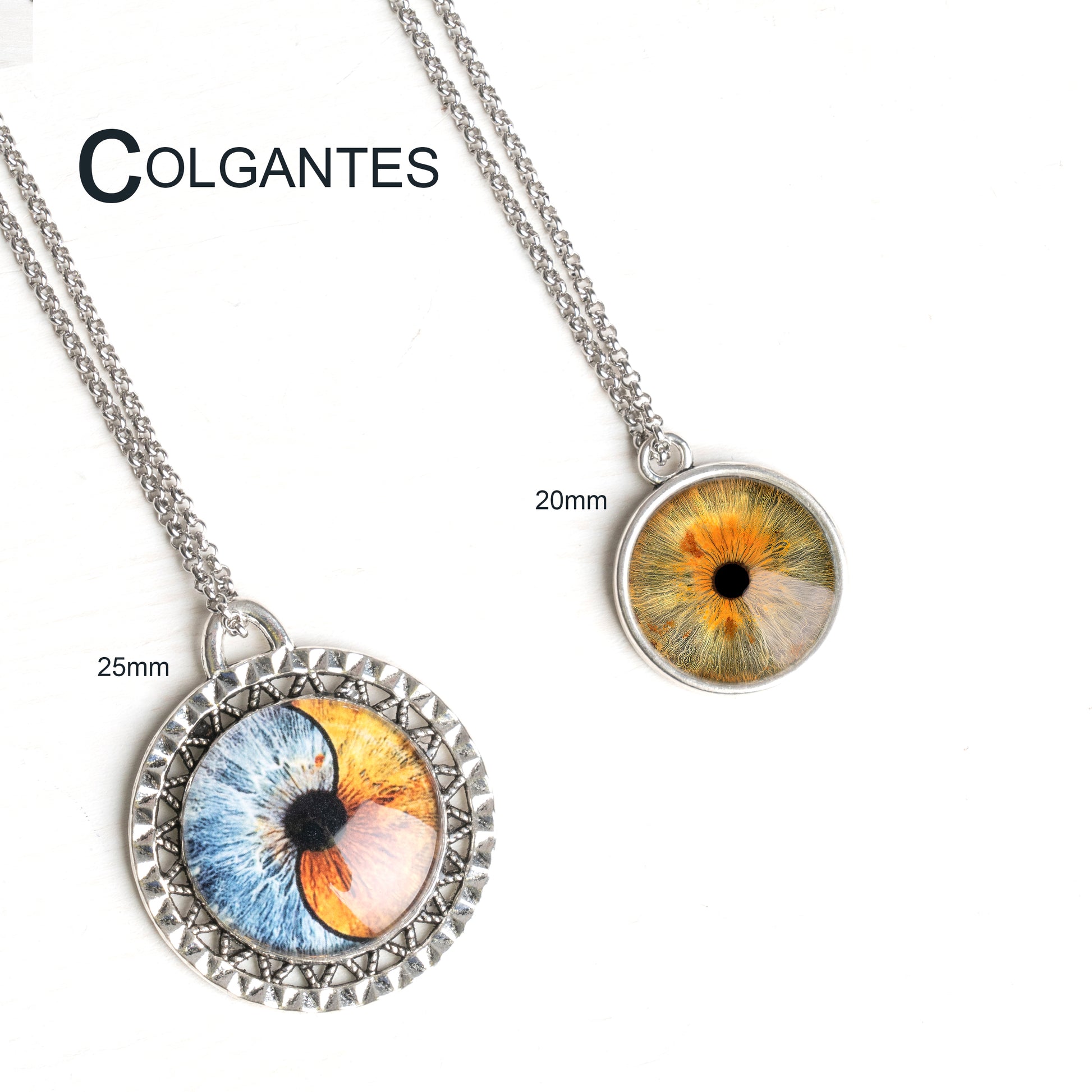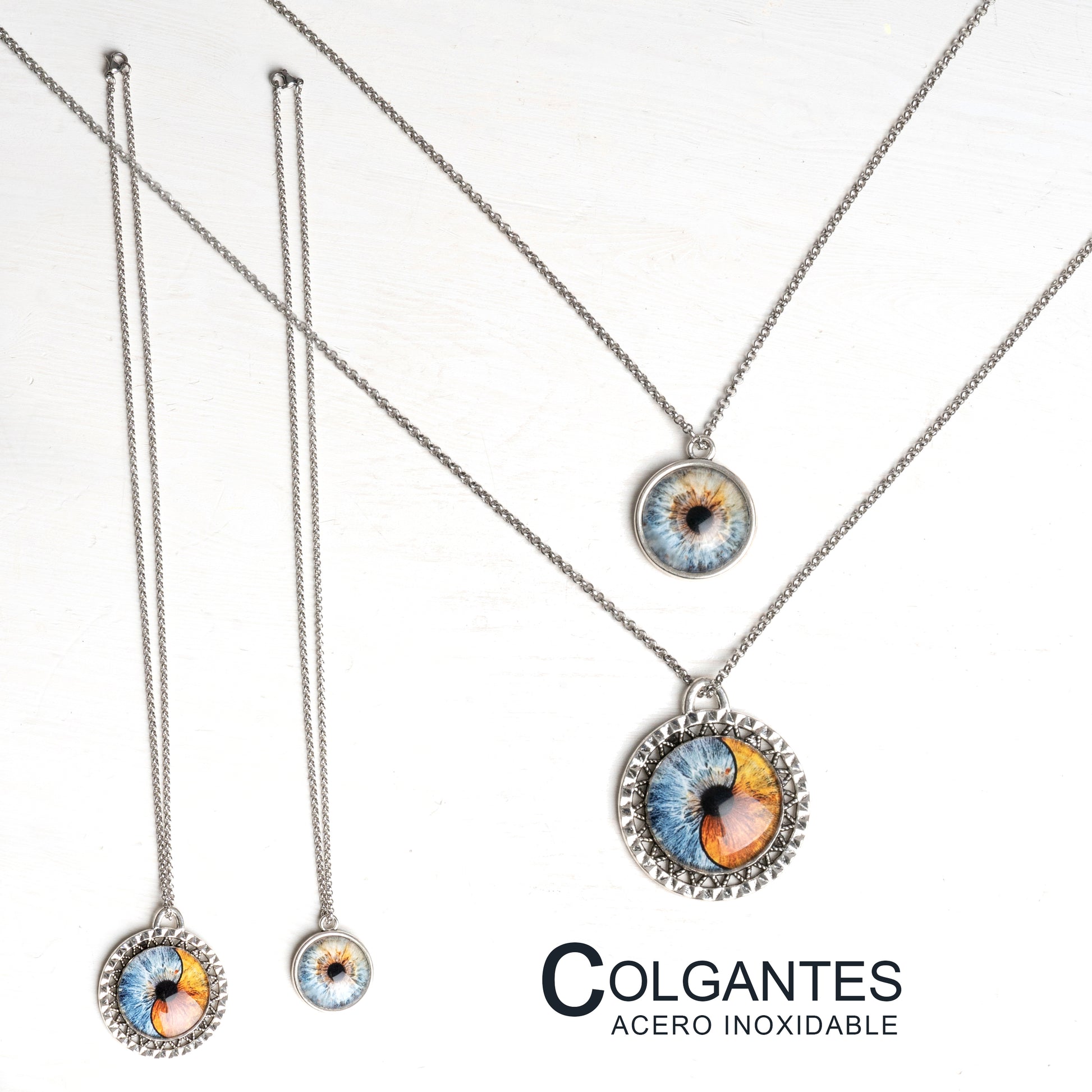 Collar de acero inoxidable de 20 o 25mm con opción a colocar 1 o 2 iris con diseño mitad o ying/yang